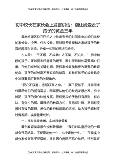 初中校长在家长会上发言讲话:别让溺爱毁了孩子的黄金三年.docx