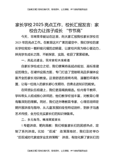 家长学校2025亮点工作,校长汇报发言:家校合力让孩子成长“节节高”.docx
