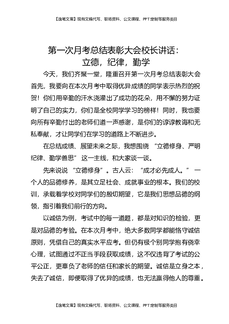 第一次月考总结表彰大会校长讲话:立德,纪律,勤学.docx