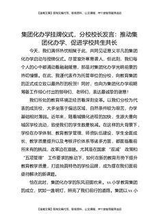 集团化办学挂牌仪式,分校校长发言:推动集团化办学、促进学校共生共长.docx