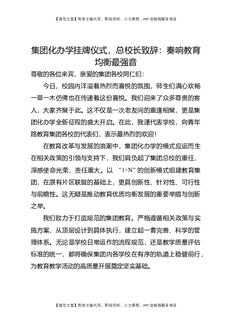 集团化办学挂牌仪式,总校长致辞:奏响教育均衡最强音.docx
