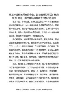 高三毕业班教师座谈会上,副校长精彩讲话:破局2025高考,高三教师的奋进之约与必胜信念.docx