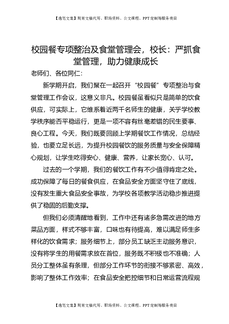 校园餐专项整治及食堂管理会,校长:严抓食堂管理,助力健康成长.doc