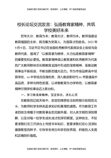 校长论坛交流发言:弘扬教育家精神,共筑学校美好未来.docx