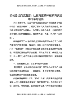 校长论坛交流发言:让教育家精神在教育实践中传承与创新.docx