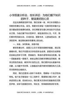 小学质量分析会,校长讲话:为他们播下知识的种子,塑造美好的心灵.docx