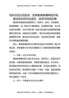 校长论坛交流发言:发挥教育家精神的作用,推动校长的专业成长,促进学校的发展.docx