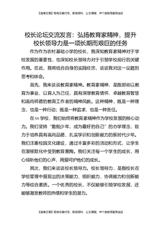 校长论坛交流发言:弘扬教育家精神,提升校长领导力是一项长期而艰巨的任务.docx