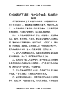 校长在国旗下讲话:守护生命安全,杜绝拥挤踩踏.docx