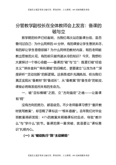 分管教学副校长在全体教师会上发言:备课的破与立.docx