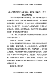 高三年级经验分享交流,副校长发言:齐心协力铸辉煌.docx