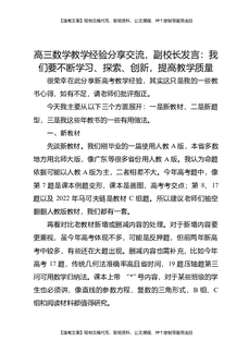 高三数学教学经验分享交流,副校长发言:我们要不断学习、探索、创新,提高教学质量.docx