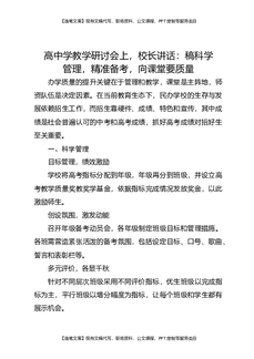 高中学教学研讨会上,校长讲话:稿科学管理,精准备考,向课堂要质量.docx