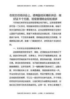 在班主任培训会上,德育副校长精彩讲话:做好这9个方面,班级管理将会轻松很多.docx