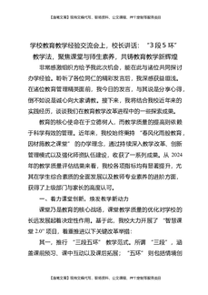 学校教育教学经验交流会上,校长讲话:”3段5环“教学法,聚焦课堂与师生素养,共铸教育教学新辉煌.docx
