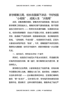 新学期第三周,校长在国旗下讲话:守好校园“小规矩”,成就人生“大格局”.docx
