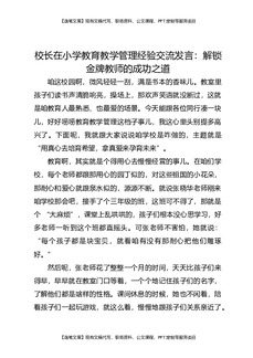 校长在小学教育教学管理经验交流发言:解锁金牌教师的成功之道.docx