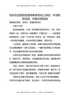 校长在近视防控宣传教育活动上讲话:科学防控近视,共建光明校园.docx