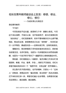 校长在青年教师座谈会上发言:修德、修业、修心、修行——为成长厚土扎根远方.docx
