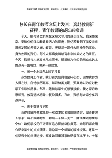 校长在青年教师论坛上发言:奔赴教育新征程,青年教师的成长必修课.docx
