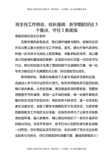 班主任工作例会,校长强调:新学期抓好这3个重点、守住1条底线.docx