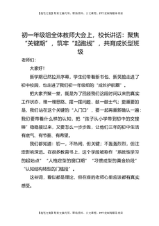 初一年级组全体教师大会上,校长讲话:聚焦“关键期”,筑牢“起跑线”,共育成长型班级.docx