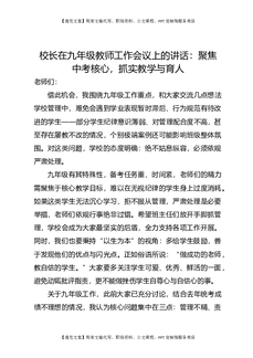 校长在九年级教师工作会议上的讲话:聚焦中考核心,抓实教学与育人.docx