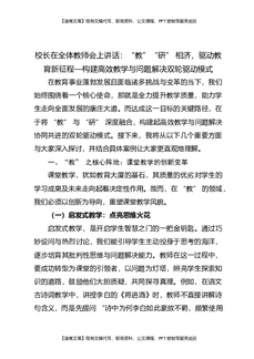 校长在全体教师会上讲话:“教”“研”相济,驱动教育新征程——构建高效教学与问题解决双轮驱动模式.docx