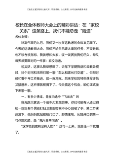 校长在全体教师大会上的精彩讲话:在“家校关系”这条路上,我们不能总走“险道”.docx