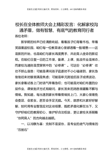 校长在全体教师大会上精彩发言:化解家校沟通矛盾,做有智慧、有底气的教育同行者.docx