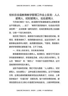 校长在全县教育教学管理工作会上发言:人人都育人、时时都育人、处处都育人.docx