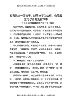 校长在全市教育教学工作研讨会上发言:教育就像一面镜子,能照出学生啥样,也能看出办学者有没有本事.docx