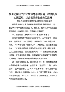 校长在全市教育教学改革与发展研讨会上发言:学生们摆脱了死记硬背的学习困境,积极投身实践活动,综合素质得到全方位提升.docx
