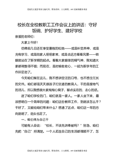 校长在全校教职工工作会议上的讲话:守好饭碗、护好学生、建好学校.docx