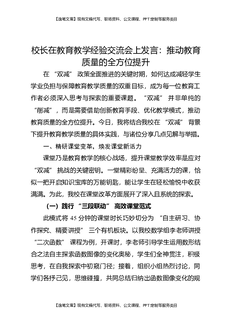 校长在教育教学经验交流会上发言:推动教育质量的全方位提升.docx