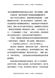 校长在教育教学经验交流会上发言:用心去教育,用爱打造未来,我们学校每个老师的经验都值得学习.docx