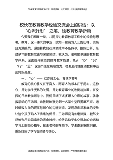 校长在教育教学经验交流会上的讲话:以“心识行思”之笔,绘教育教学新篇.docx