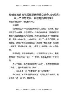 校长在教育教学质量提升经验交流会上的发言:从一节课的变化,看教育质量的成长.docx