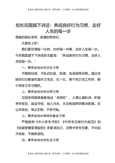 校长在国旗下讲话:养成良好行为习惯,走好人生的每一步.docx