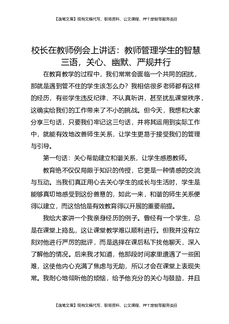 校长在教师例会上讲话:教师管理学生的智慧三语,关心、幽默、严规并行.docx