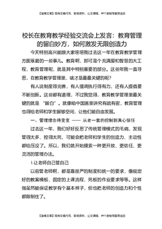 校长在教育教学经验交流会上发言:教育管理的留白妙方,如何激发无限创造力.docx