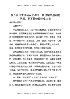 校长在班主任会议上讲话:处理学生遇到的问题,而不是处理学生本身.doc
