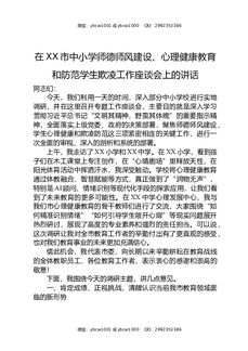 在XX市中小学师德师风建设、心理健康教育和防范学生欺凌工作座谈会上的讲话.docx