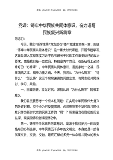 学校党课:铸牢中华民族共同体意识,奋力谱写民族复兴新篇章.docx