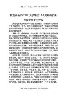 校友会会长在XX大学建校110周年高质量发展大会上的致辞.docx