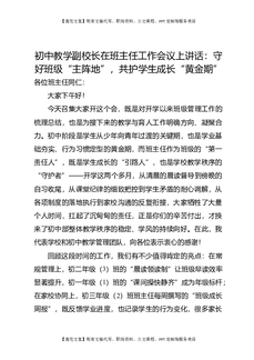 初中教学副校长在班主任工作会议上讲话:守好班级“主阵地”,共护学生成长“黄金期”.docx