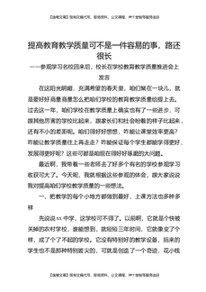 参观学习名校回来后,校长在学校教育教学质量推进会上发言:提高教育教学质量可不是一件容易的事,路还很长.docx