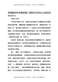 德育副校长在期初第二周班主任会议上的讲话.docx