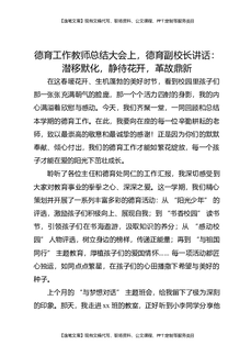 德育工作教师总结大会上,德育副校长讲话:潜移默化,静待花开,革故鼎新.docx