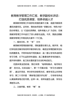 教育教学管理工作汇报,教学副校长讲话:打造优质课堂,培养卓越人才.docx